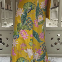 Dupatta- Yellow chanderi silk digitally printed dupatta with gold fringe border.
